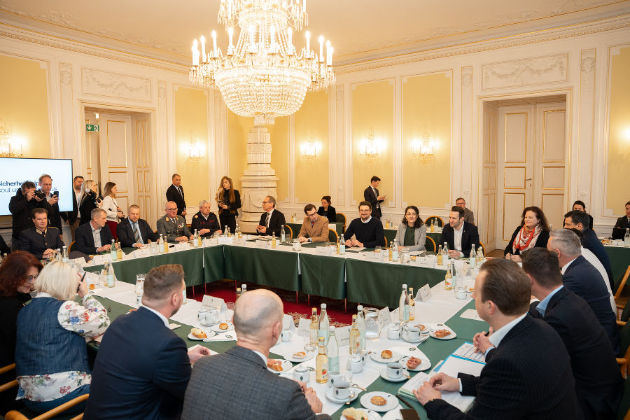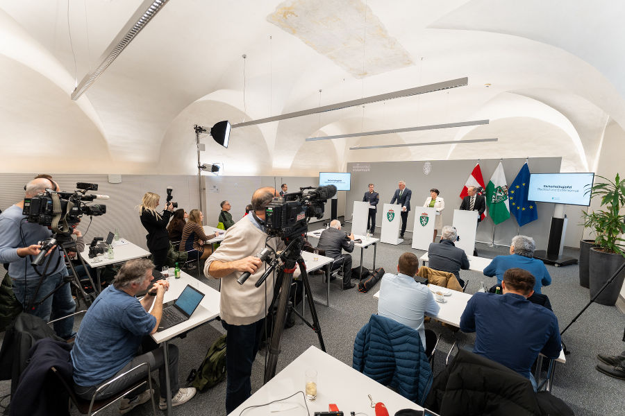 Landespolizeidirektor Gerald Ortner und der Leiter des Landesamtes für Staatsschutz und Extremismusbekämpfung Steiermark, Rupert Meixner, sowie der Militärkommandant Heinz Zöllner berichteten über Erkenntnisse und Maßnahmen in ihren jeweiligen Zuständigkeitsbereichen.